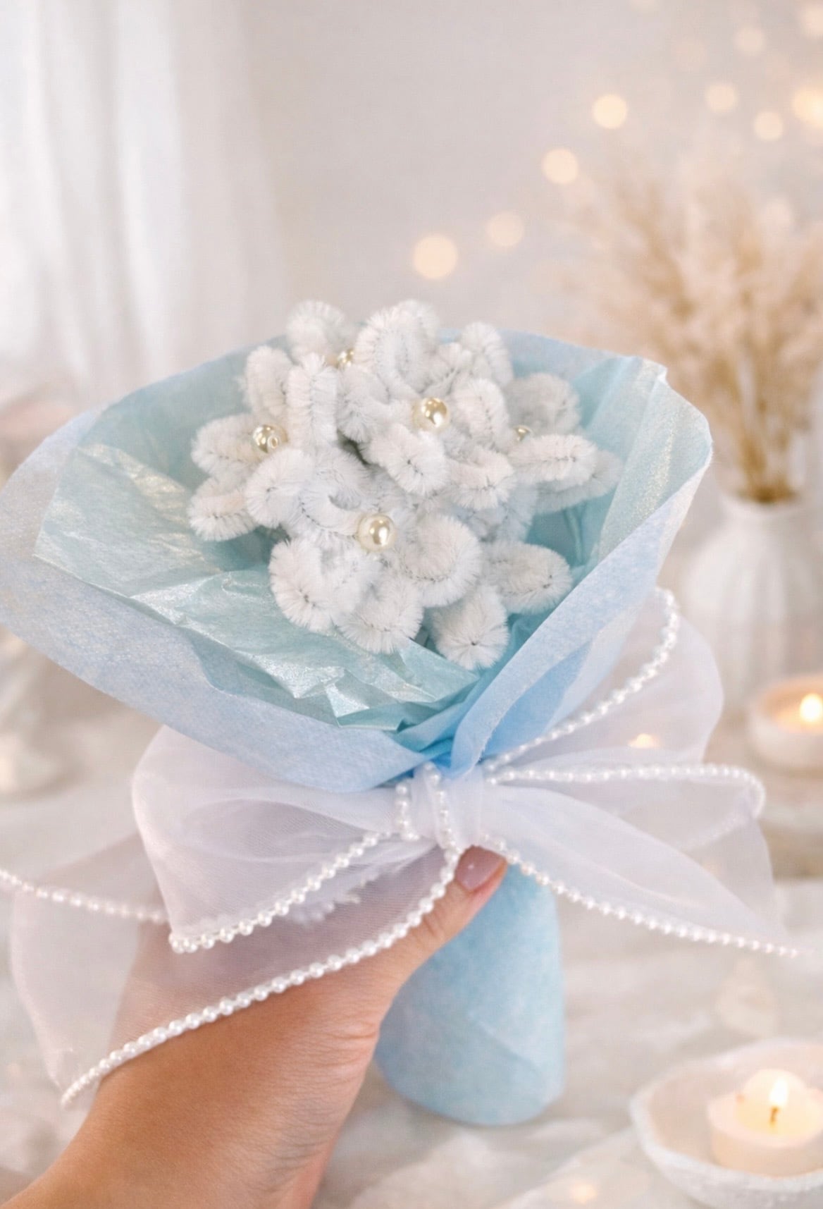 ふんわりとした質感とパールのアクセントが、特別な日の贈り物にもぴったり。